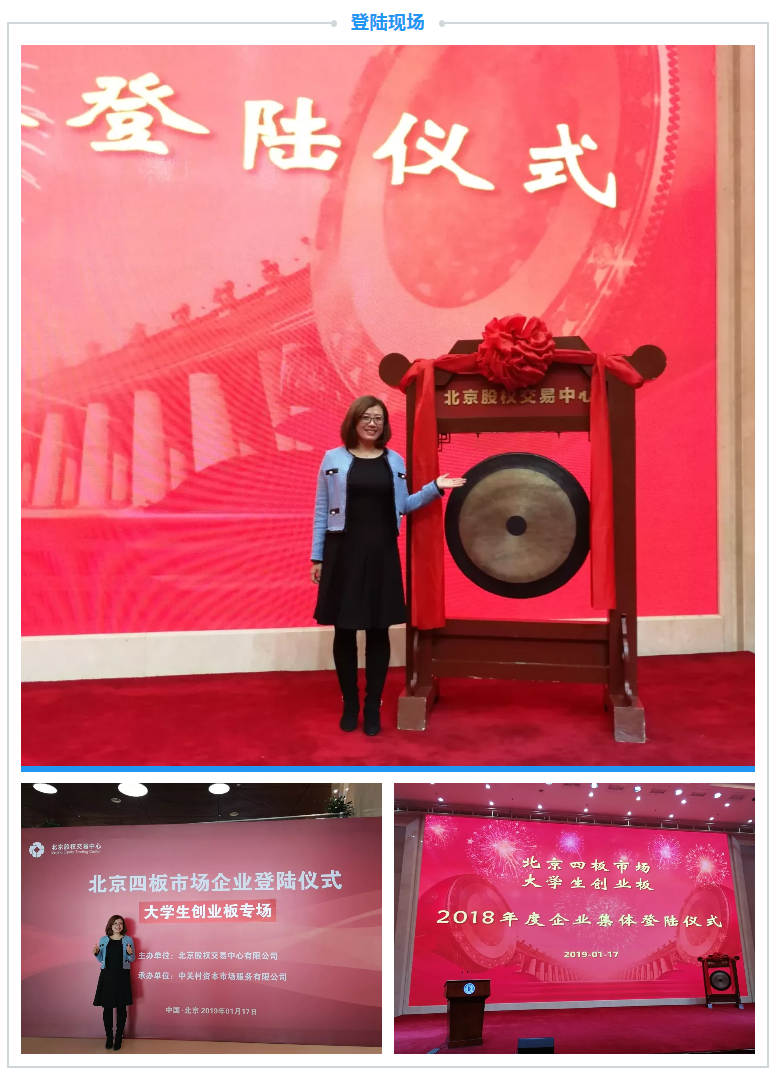 2019年1月17日上午,北京四板市场大学生创业板2018年度上板企业集体登陆仪式在中关村国家自主创新示范区展示中心会议中心一层隆重举行,包含国科mk体育-中国一站式服务平台在内的近40家大学生创业企业在此敲响了资本市场之锣。